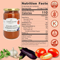 Ingredients: Italian Tomatoes, Extra Virgin Olive Oil, Onions, Wine, Salt, Garlic, Sugar, Oregano, Hot pepper, Fried Eggplants