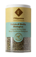 - Filippone Organic Sicilian Sage (Salvia): An Organic Sage with an intense aroma cultivated according to tradition in the Madonie mountains at 1000 meters above sea level. Harvested by hand and packaged using artisanal methods which guarantee the quality and preservation of the aroma over time.