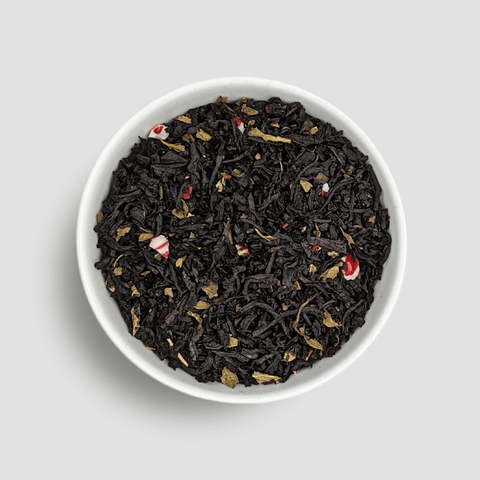 Black tea, candy cane pieces, peppermint leaves, natural candy cane flavor