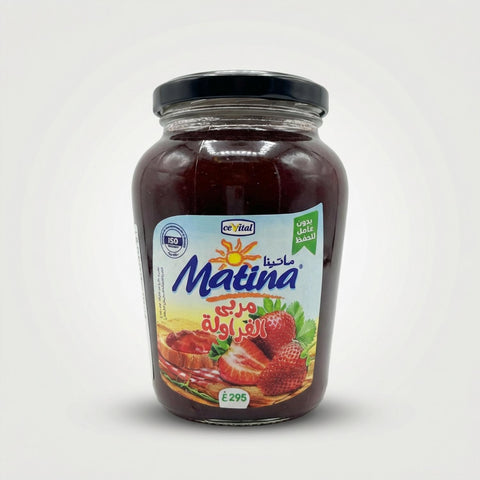 Indulge in the sweet and luscious taste of Matina's Strawberry Jam, crafted from ripe, juicy strawberries. Each jar is filled with the essence of freshly picked strawberries, delivering a burst of natural flavor in every spoonful. Perfect for breakfast spreads, baking, or simply with toast, this jam brings the delightful taste of summer to your meals all year round. With its vibrant color and irresistible sweetness, Matina's Strawberry Jam is a must-have in your pantry. Enjoy the perfect balance of fruitiness and texture, enhancing both simple and gourmet dishes alike.