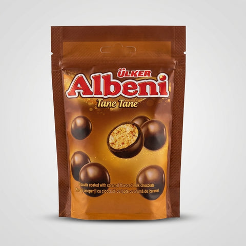 Indulge in the irresistible taste of Ülker Albeni Tane Tane, a premium Turkish chocolate treat that combines crunchy biscuit pieces with smooth, caramel-flavored milk chocolate. Each bite-sized piece offers the perfect balance of crispy texture and rich sweetness, making it an ideal snack for chocolate lovers and anyone seeking an authentic taste of Turkey's finest confections.